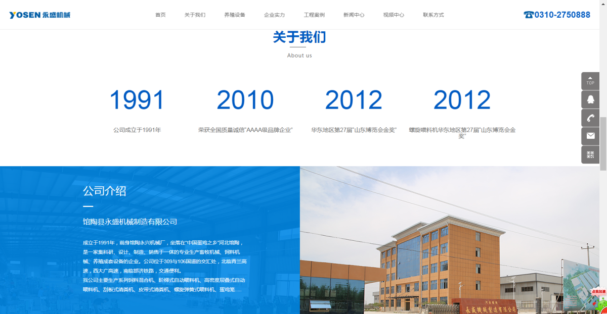 館陶縣永盛機械制造有限公司成立于1991年,前身館陶永興機械廠,坐落在“中國蛋雞之鄉(xiāng)”河北館陶,是一家集科研、設(shè)計、制造、銷售于一體的***生產(chǎn)畜牧機械、飼料機械、養(yǎng)殖成套設(shè)備的企業(yè)。公司位于309與106國道的交匯處,北臨青蘭高速,西臨大廣高速,南臨邯濟鐵路,交通便利。