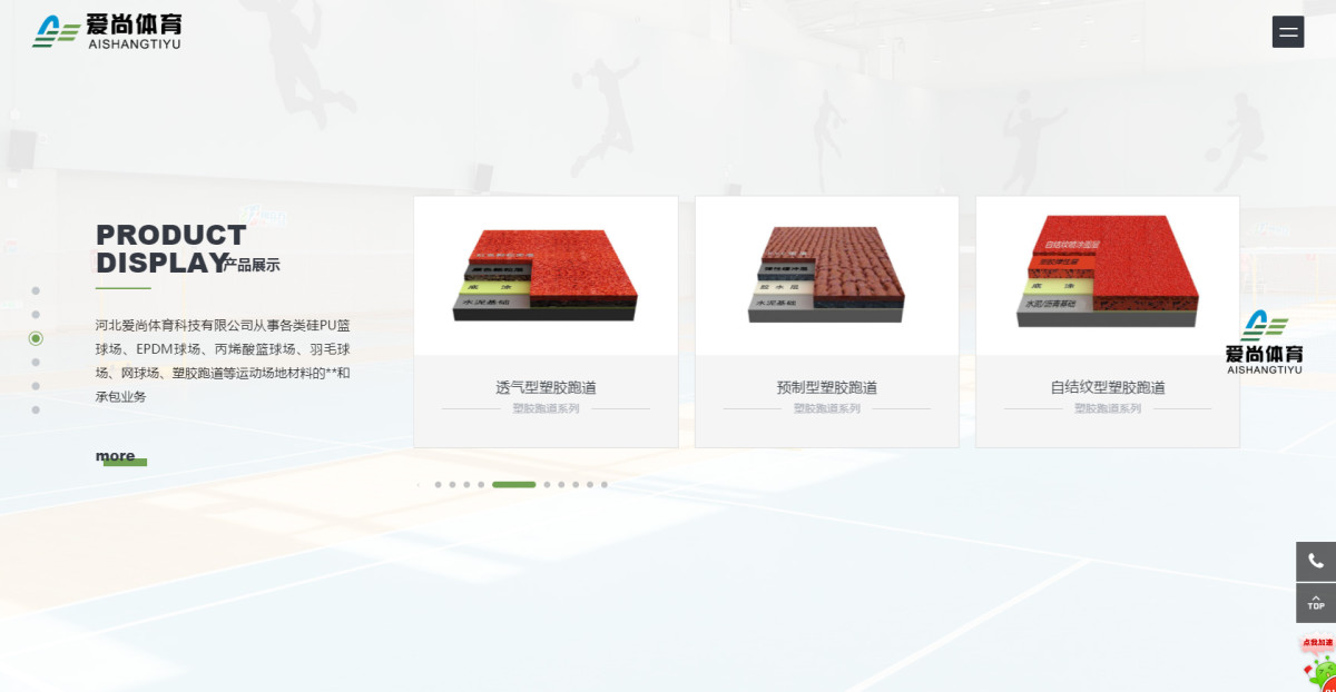 河北愛(ài)尚體育科技有限公司 一家集生產(chǎn)、研發(fā)、銷售、設(shè)計(jì)、施工于一體的現(xiàn)代化綜合性企業(yè)。